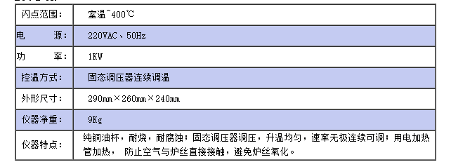 儀器符合GB/T3536;GB/T267;ASTMD92標(biāo)準(zhǔn),適用于測(cè)定石油產(chǎn)品的閃點(diǎn)和燃點(diǎn),但不適用于測(cè)定燃料油的開口閃點(diǎn)低于79℃石油產(chǎn)品。儀器采用固態(tài)調(diào)壓器,用調(diào)節(jié)旋鈕調(diào)節(jié)電爐電壓從而實(shí)現(xiàn)按標(biāo)準(zhǔn)要求的升溫速度。