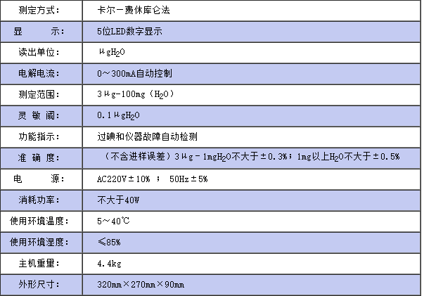 儀器符合GB/T7600;SH/T0246;GB/T606及采用卡爾—費(fèi)休法測(cè)定樣品中水分的有關(guān)標(biāo)準(zhǔn)。儀器采用了先進(jìn)的自動(dòng)控制電路,電解電流自動(dòng)跟蹤控制,外型結(jié)構(gòu)新穎,增加了過(guò)碘指示和儀器故障自動(dòng)檢測(cè)功能,從而使該儀器工作更可靠,使用更方便, 具有分析速度快(一分鐘出結(jié)果)、操作簡(jiǎn)便、精度高、自動(dòng)性強(qiáng)等特點(diǎn),廣泛應(yīng)用于石油、化工、電力、鐵路、環(huán)保等部門。