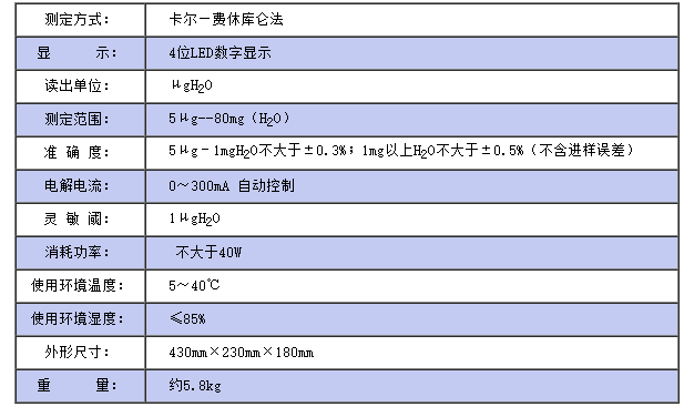 儀器符合GB/T7600及采用卡爾—費(fèi)休法測定樣品中水分的有關(guān)標(biāo)準(zhǔn),儀器采用了先進(jìn)的自動控制電路,電解電流自動跟蹤控制,外型結(jié)構(gòu)新穎,從而使該儀器工作更可靠,使用更方便, 具有分析速度快(一分鐘出結(jié)果)、操作簡便、精度高、自動性強(qiáng)等特點(diǎn),廣泛應(yīng)用于石油、化工、電力、鐵路、環(huán)保等部門。